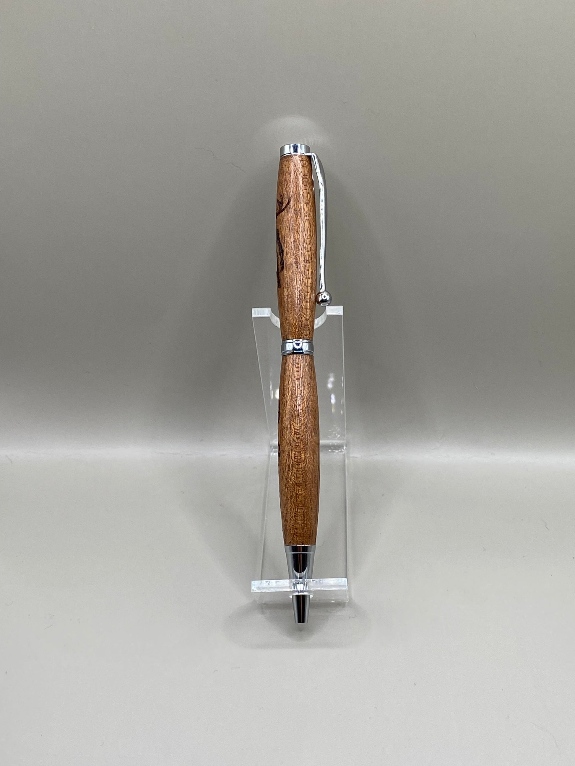 Made from premium solid mahogany wood, this ballpoint pen displays deep, warm reddish-brown tones and stunning natural grain that make every piece one-of-a-kind. The luxurious wood finish contrasts sharply with brilliant chrome hardware — including a sleek clip, center band, and precision tip — for a premium, balanced feel that’s both comfortable and striking.