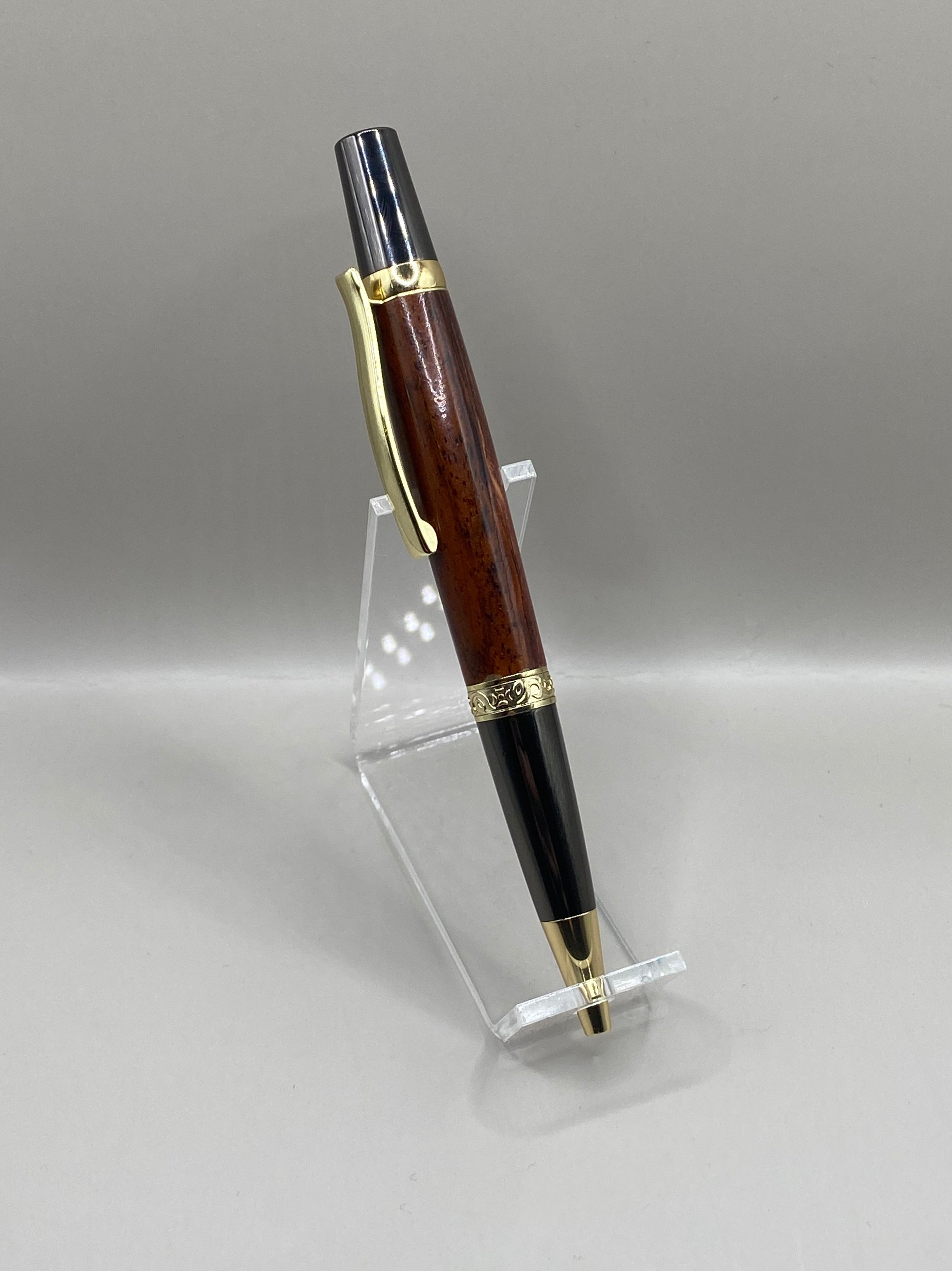 Handmade Luxury Cocobolo Wood Ballpoint Pen – Exotic Rosewood Elegance with Gold Accents
